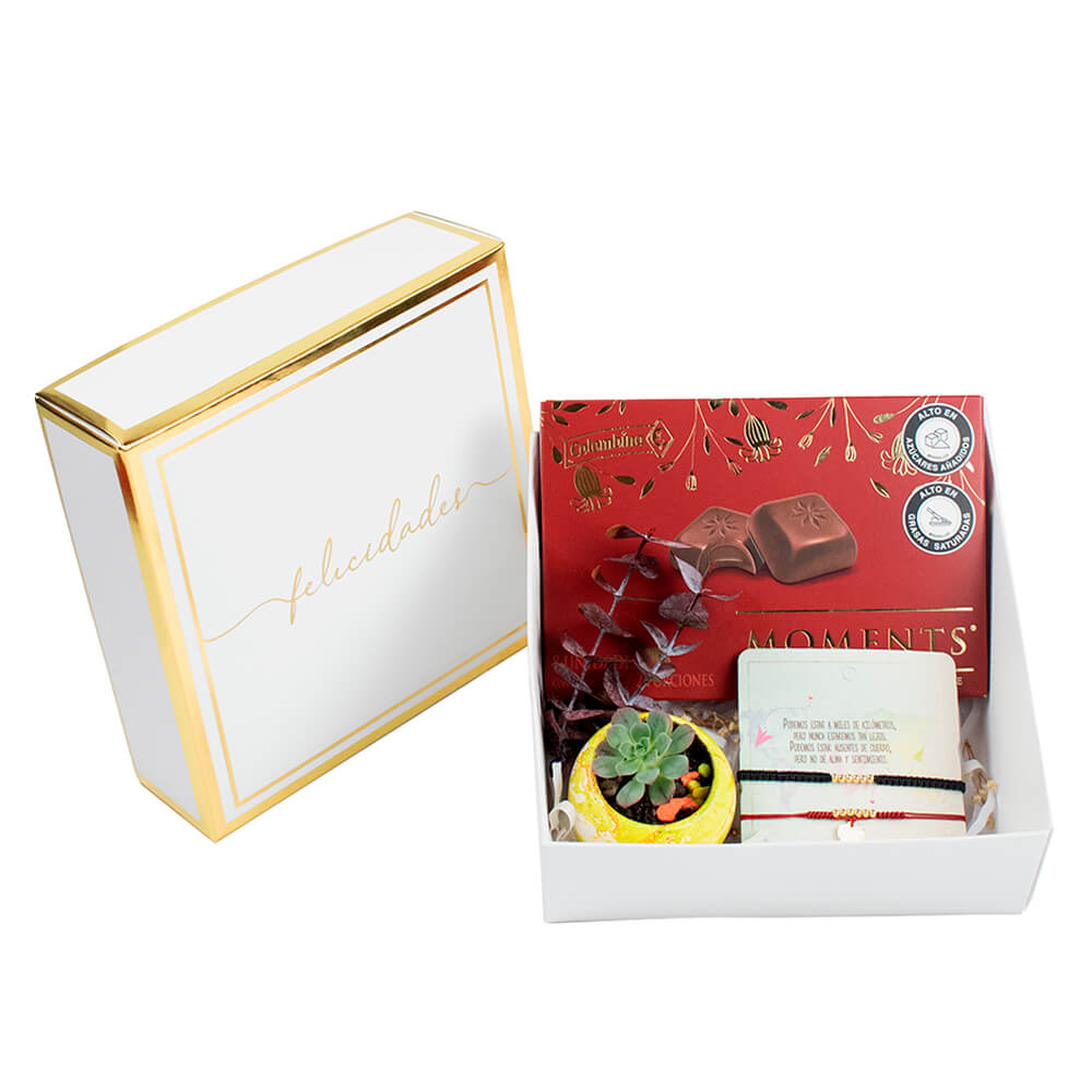 -1 Caja especial blanca con mensaje de Felicidades.