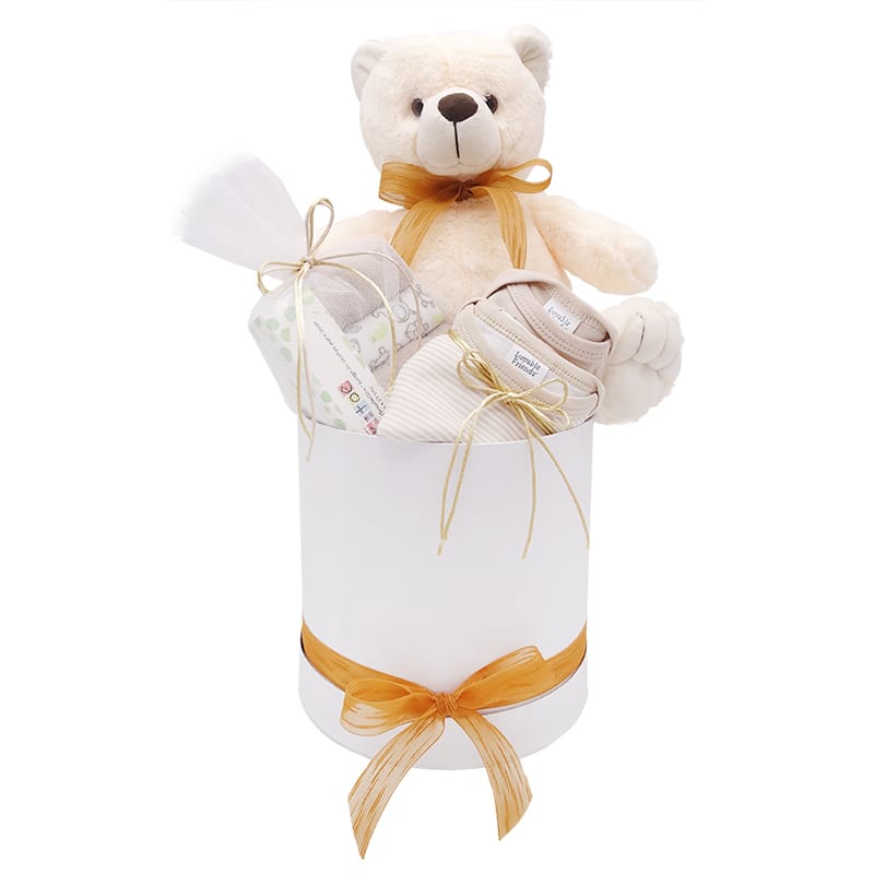 En The Gift Company todos los Regalos de Nacimiento se entregan completamente decorados con Papel Transparente Importado, Moño y Tarjeta Personalizada.