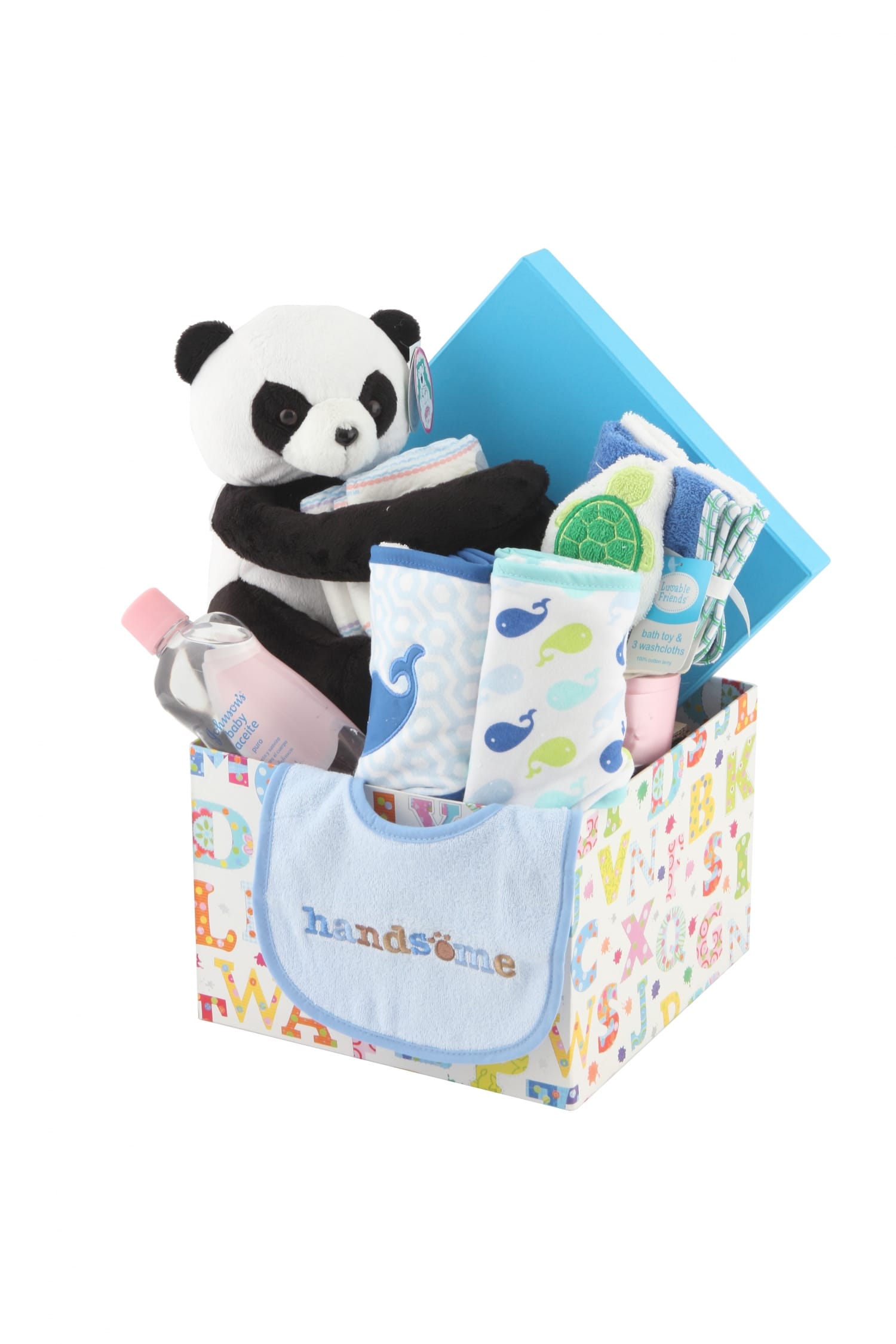 En The Gift Company todos los Regalos para Bebé se entregan completamente decorados con Papel Transparente Importado, Moño y Tarjeta Personalizada.