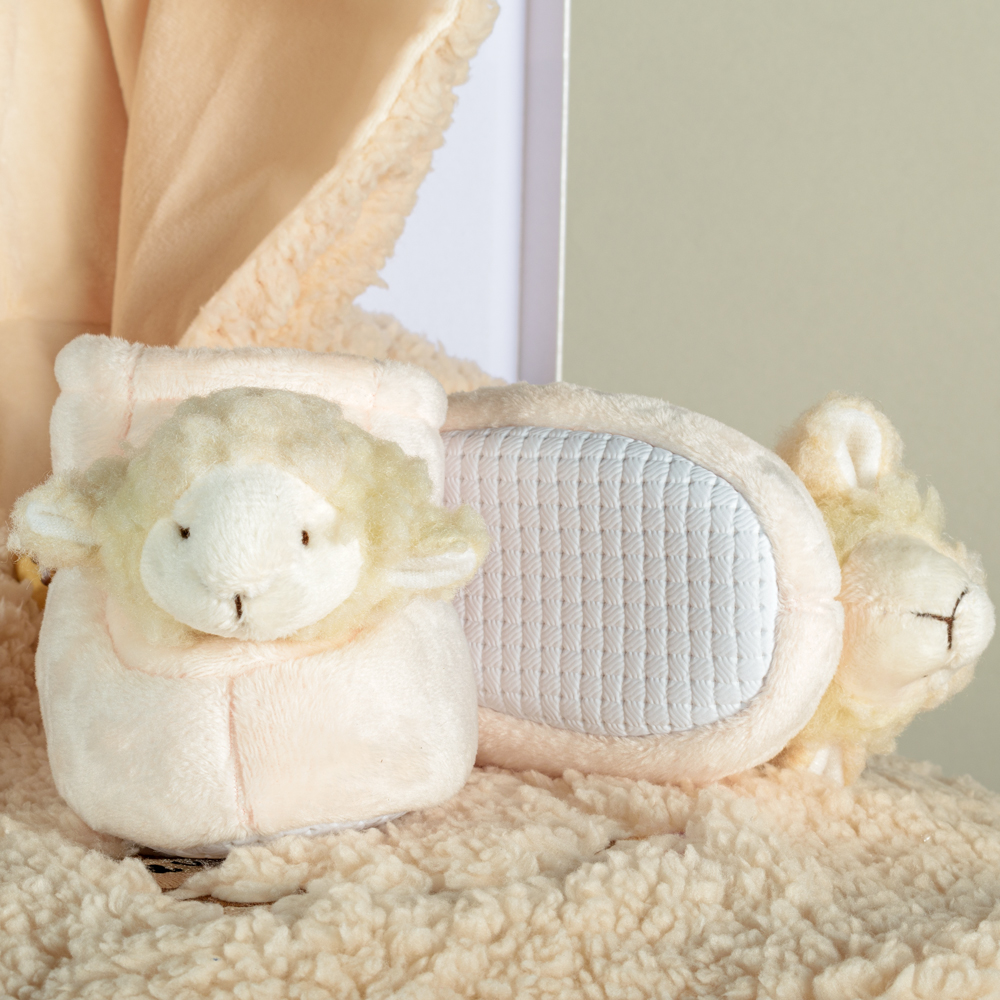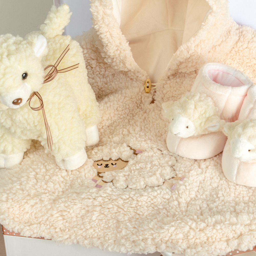 -Und. Ruana bordada para bebé con capota y textura tipo oveja.