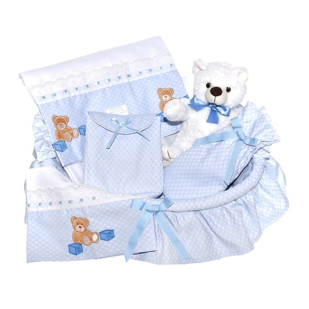 – Und. Juego de cuna bordado, con sábana, sobre sábana y Funda.