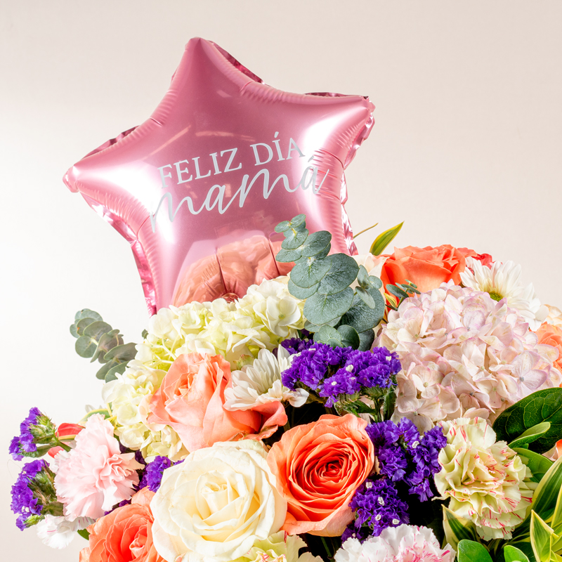 Arreglo de flores (rosas, Claveles, Hortensias, S-tatis morado, entre otros). *