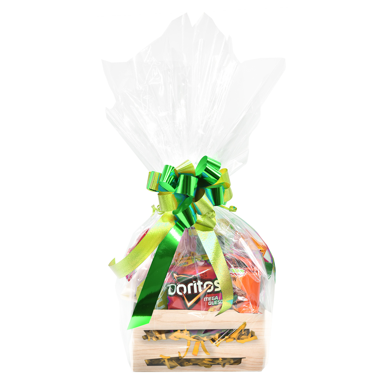 -Und. Delicioso huacal de madera relleno con variedad de dulces y golosinas sorpresa para niños.