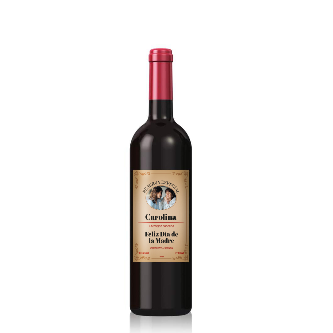 -Bot. Vino de 750ml con etiqueta personalizada, diseño incluye 1 fotografía que debes adjuntar en tu pedido o enviarla al whatsapp (de lo contrario se envía con foto genérica) y el Nombre de la persona.