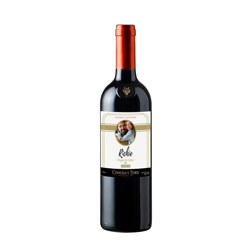 -Bot. Vino de 750ml con etiqueta personalizada, diseño incluye 1 fotografía que debes adjuntar en tu pedido o enviarla al whatsapp (de lo contrario se envía con foto genérica) y el Nombre de la persona.